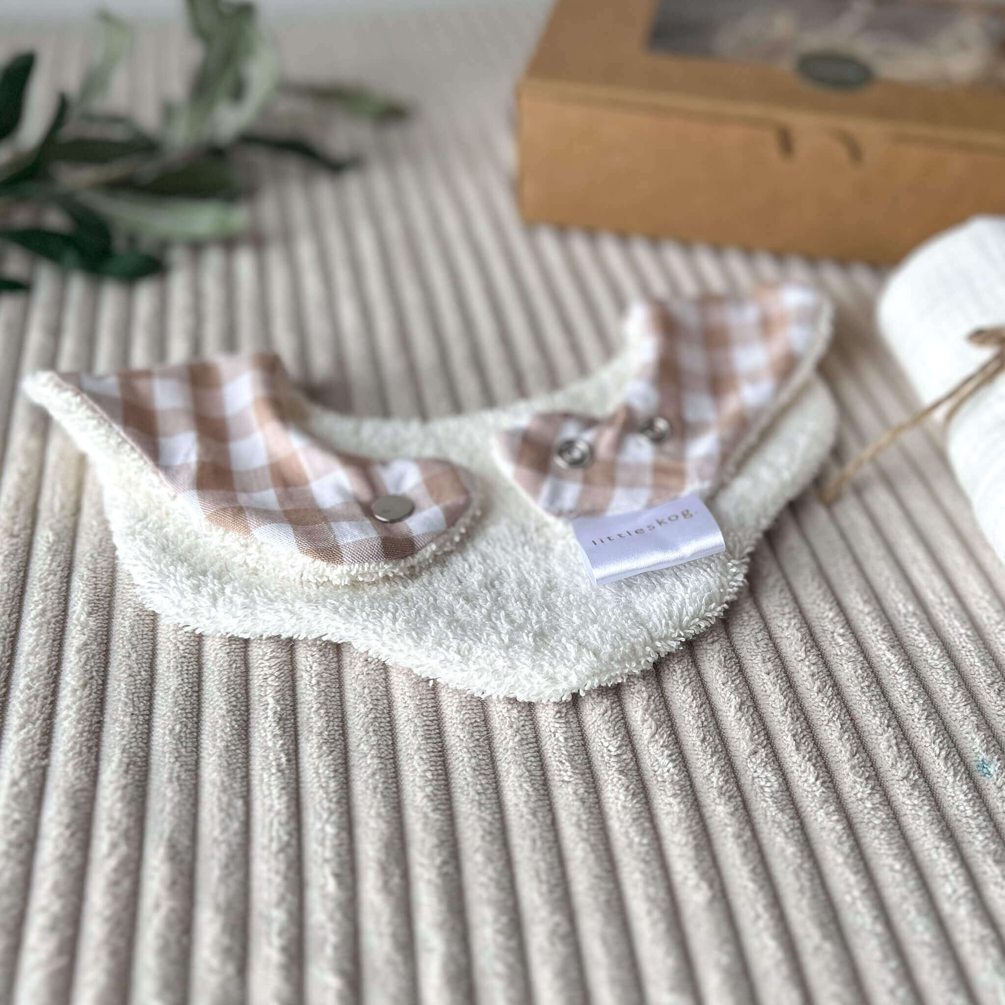 - Medium Set: Bib + Holzkamm + 2 Musselin Tücher