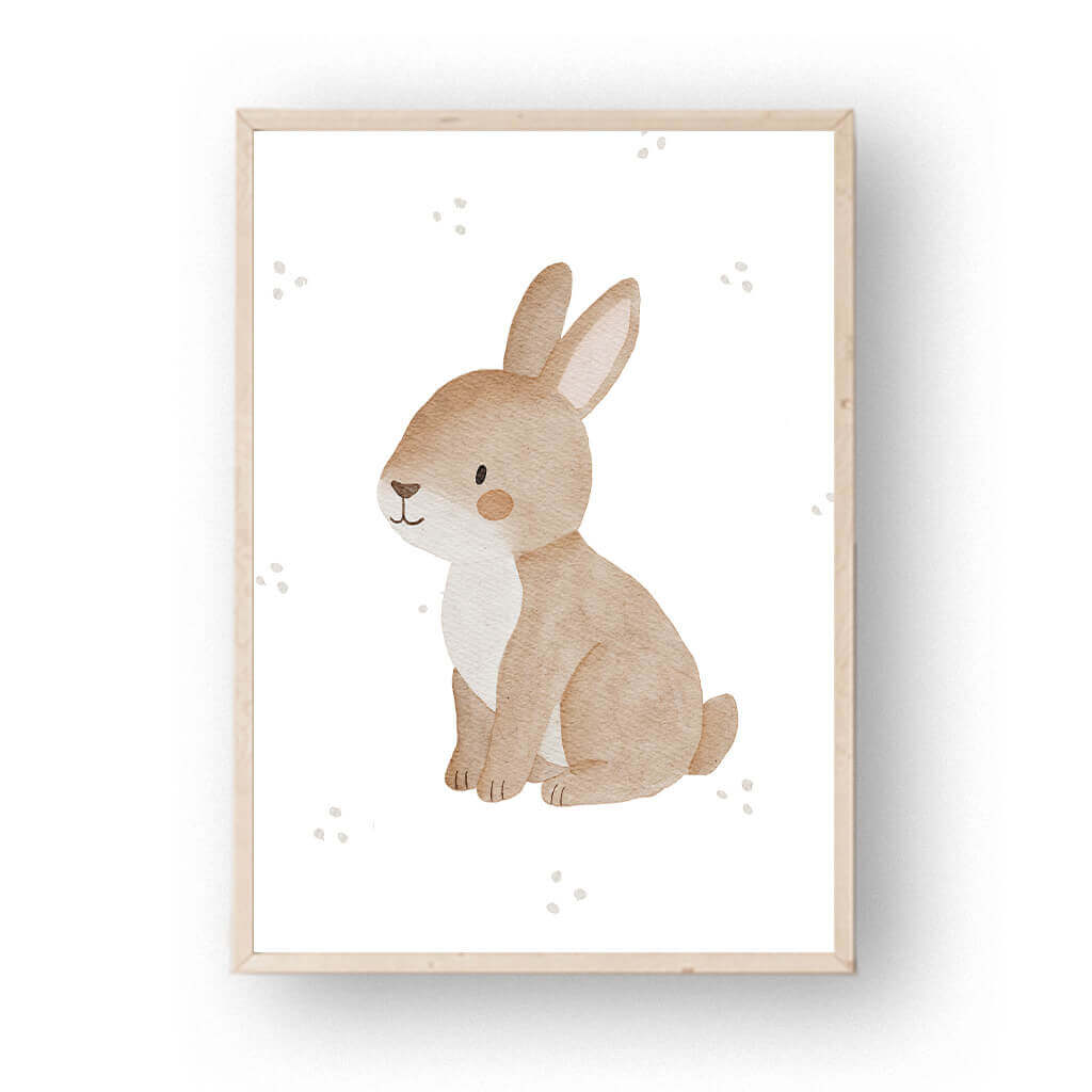 Sanft, still und wunderbar neugierig: Unser kleiner Hase bringt mit seinem schlichten Watercolor-Design Ruhe und Natürlichkeit ins Kinderzimmer. Ob als kuscheliger Begleiter über dem Bett oder als Teil einer liebevoll zusammengestellten Bilderwand – dieses Poster strahlt Wärme, Geborgenheit und kindliche Leichtigkeit aus.